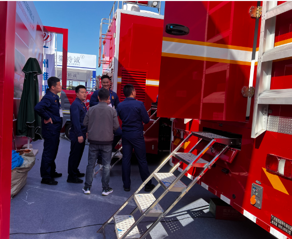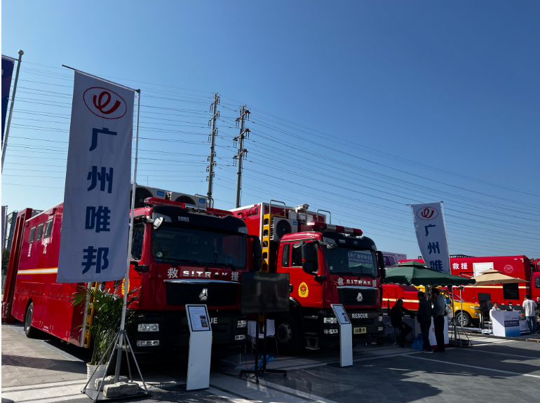 廣州唯邦攜擴展方艙型通信指揮車、小型水罐消防車、盥洗消防車亮相第二十一屆中國國際消防設備技術交流展覽會。